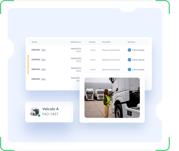 Todos os checklists ficam registrados na plataforma, criando um histórico completo da frota e facilitando auditorias e análises de desempenho.